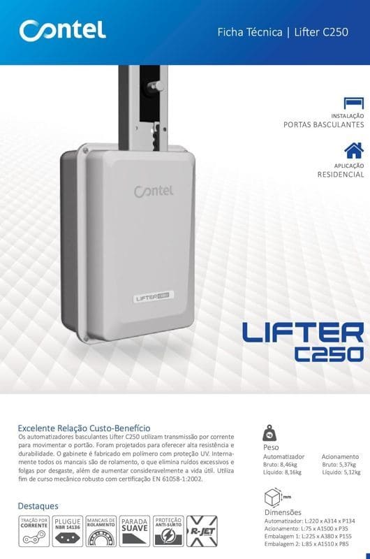 Automatizador Contel Basculante Linha Lifter C250, disponível em 127v e 220v