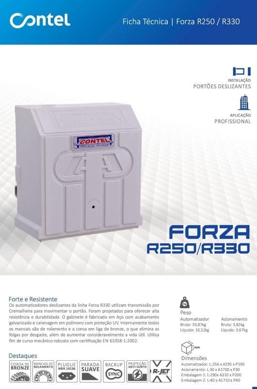 Automatizador Contel Deslizante Linha Forza C500 - Disponível Também na Linha RJET Ultra-Rápida