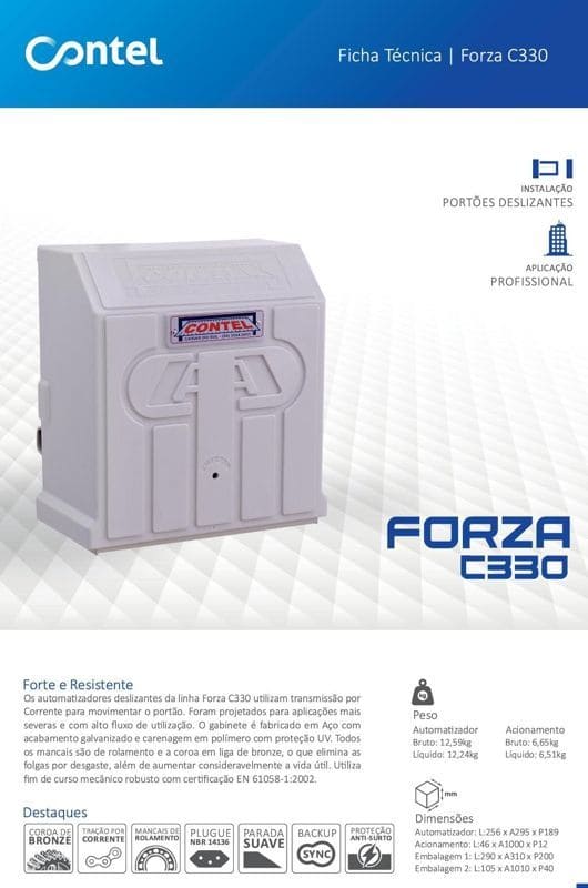Automatizador Contel Deslizante Linha Forza C330 - Alto Fluxo