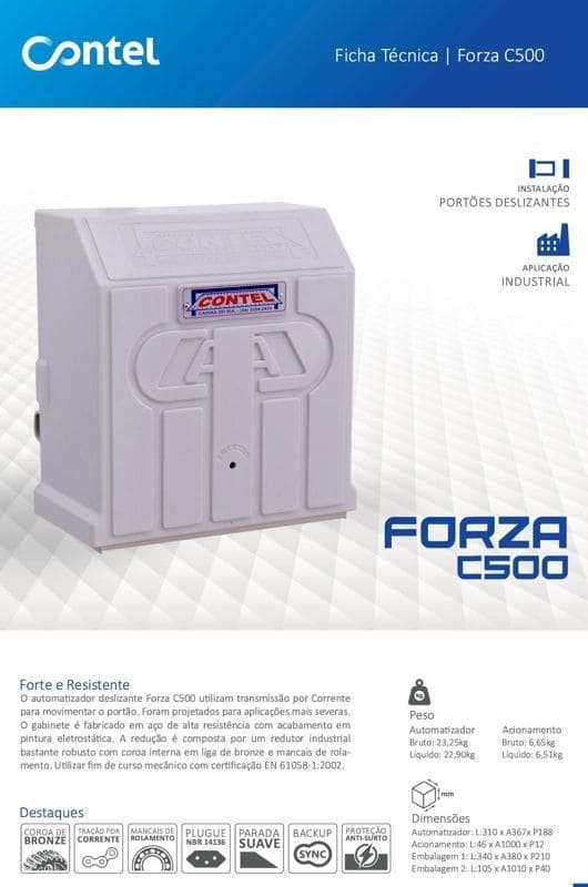 Automatizador Contel Deslizante Linha Forza C500 - Alta Capacidade e Fluxo